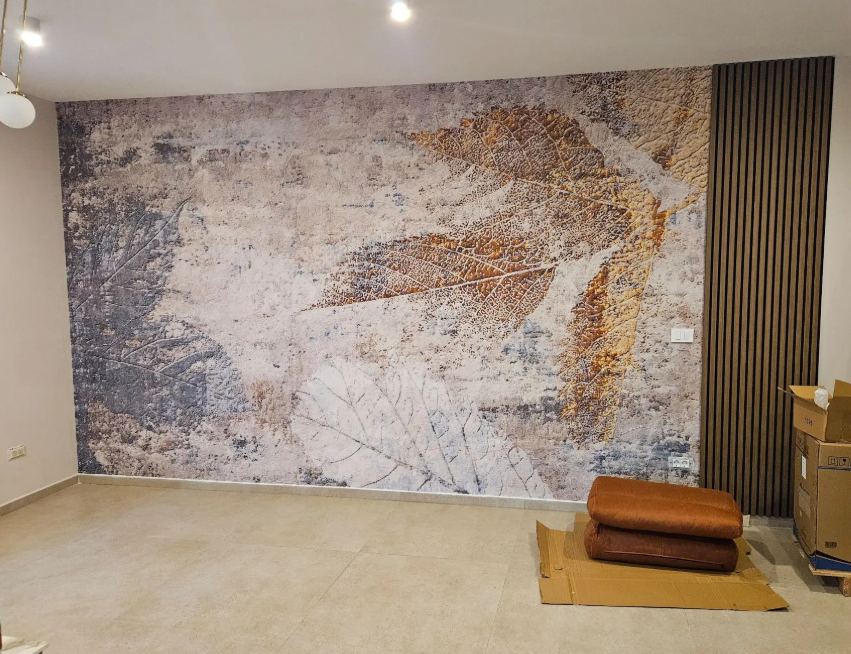Ik heb een muurschildering van Lamural gekocht en gekozen voor de linnenstructuur.