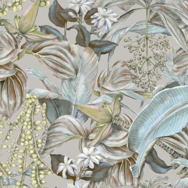 - BLOEMEN, Fotobehang, Grijs tinten, Kleuren, Stijl, TROPISCHE BLADEREN, Voor de kamer, Voor de woonkamer, Voor kantoor, Zolder