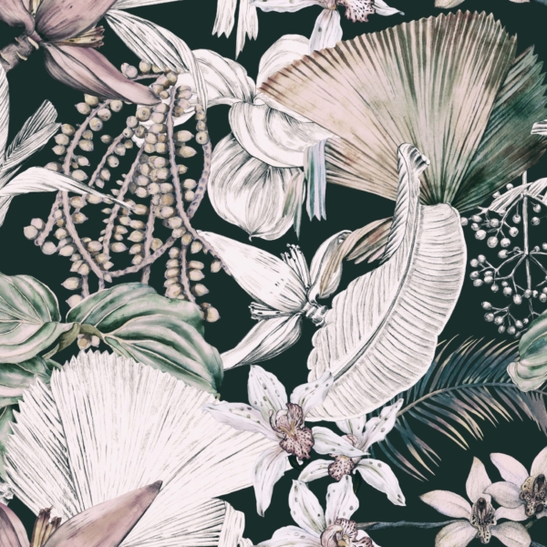 - BLOEMEN, BOHO, Fotobehang, Groene tinten, Kleuren, Stijl, Tropisch, TROPISCHE BLADEREN, Voor de badkamer, Voor de gang, Voor de kamer, Voor de keuken, Voor de slaapkamer, Voor de woonkamer, Voor kantoor