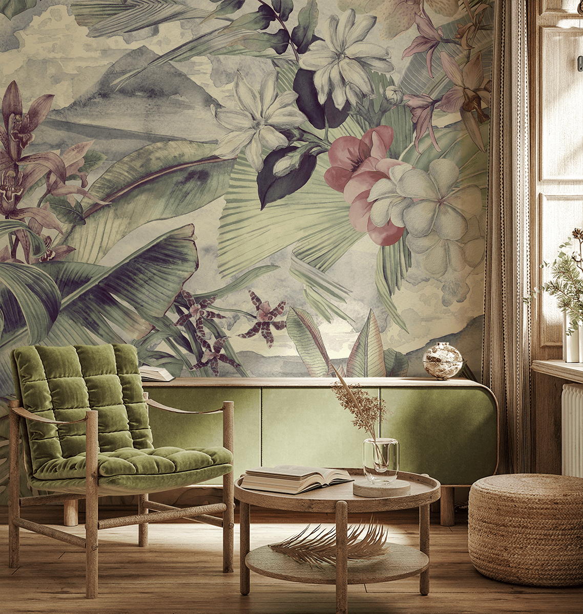 Het zal op subtiele wijze het karakter van een woonkamer, slaapkamer, kantoor of commerciële ruimte benadrukken en een ruimte creëren vol rust en tropische charme. Een fotobehang is meer dan alleen decoratie – het is een uniek accent dat frisheid, natuurlijkheid en een exotische stijl aan het interieur toevoegt.