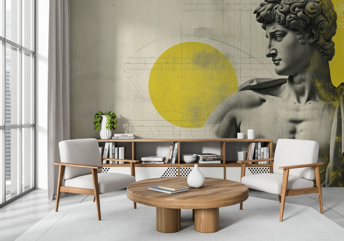 Het “Apollo” fotobehang is een artistieke interpretatie van een klassiek motief uit de oudheid met een moderne twist. De gestileerde afbeelding van de Griekse god – gepresenteerd in een elegante, minimalistische grafische stijl – brengt een aura van cultuur, harmonie en verfijnde smaak in het interieur. Perfect voor een woonkamer, kantoor, badkamer of creatieve ruimte – het voegt een subtiel vleugje stijl toe en verwijst naar de rijke wortels van de Europese kunst. “Apollo” is een voorstel voor wie waarde hecht aan klassieke ontwerpen, Griekse esthetiek en elegant minimalisme – het geeft het interieur artistieke diepte, rust en een tijdloos karakter.
