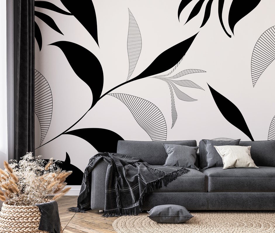 - 3D, BLOEMEN, Fotobehang, NATUUR, Voor de slaapkamer, Kleuren, Minimalistisch, Stijl, Voor de kamer, Voor de woonkamer, Voor kantoor, Zwart en wit