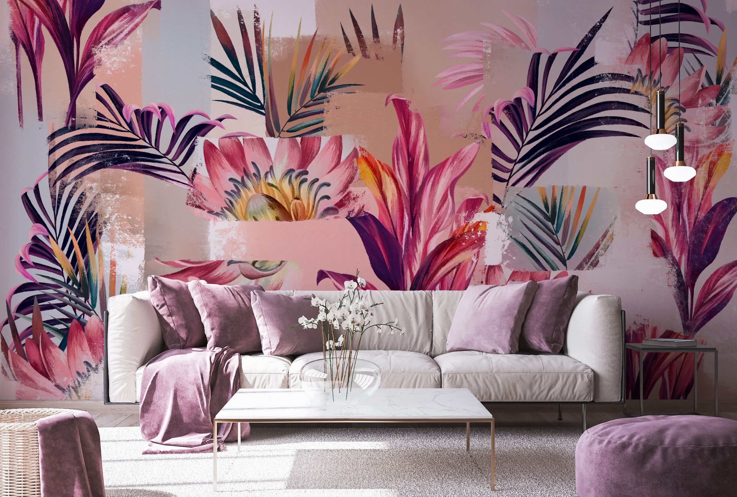 Breng een unieke sfeer in huis met het “Bloemenmozaïek” fotobehang. Dit dynamische, kleurrijke patroon combineert levendige tinten roze, paars en groen met abstracte, schilderachtige accenten, waardoor een harmonieuze compositie ontstaat vol frisheid en een modern karakter.