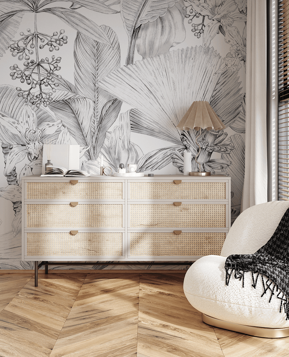 “Botanische Elegantie” Fotobehang – Tijdloze Klassiekers, Natuurlijke Verfijning en Verfijnde Interieurdecoratie