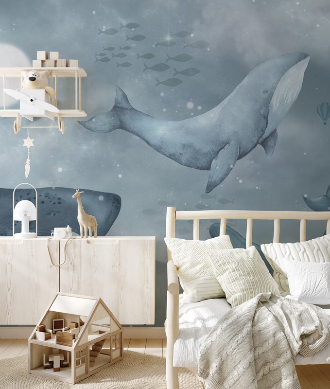 Fotobehang met dansende walvissen – een oceaanavontuur in een kinderkamer