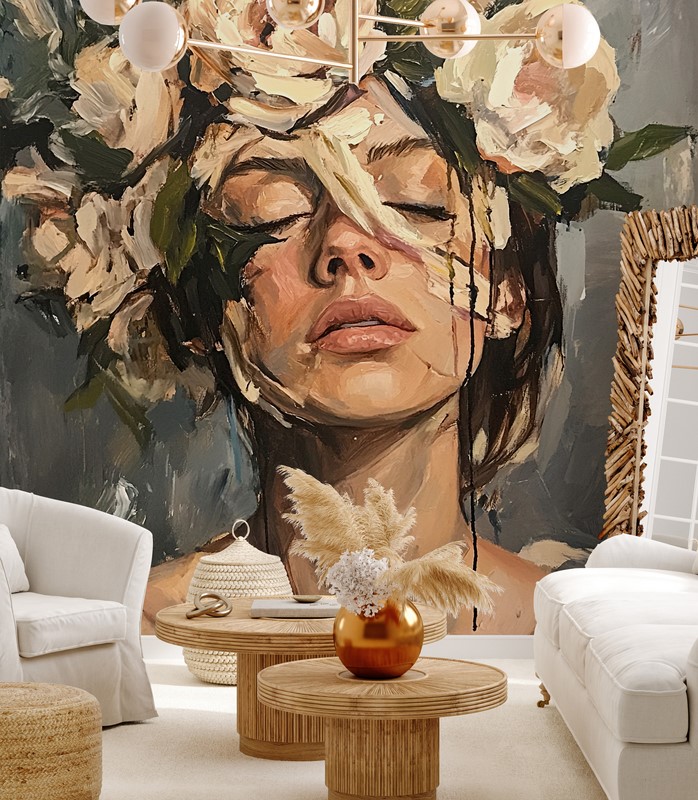 Het “Blossom of the Self” fotobehang is een wanddecoratie die artistieke expressie en subtiele verfijning uitstraalt. Abstracte vormen die doen denken aan bloeiende bloemen in pasteltinten van roze en beige creëren een harmonieuze compositie vol lichtheid en emotie. Dit alles is in feite een krans op het hoofd van een prachtige vrouw. Perfect voor een woonkamer, slaapkamer, creatief kantoor of ontspanningsruimte – het brengt een aura van balans, inspiratie en ingetogen elegantie. Het “Blossom of the Self” fotobehang is een aanbod voor diegenen die moderne arrangementen waarderen met artistieke flair, emotionele expressie en subtiele schoonheid.
