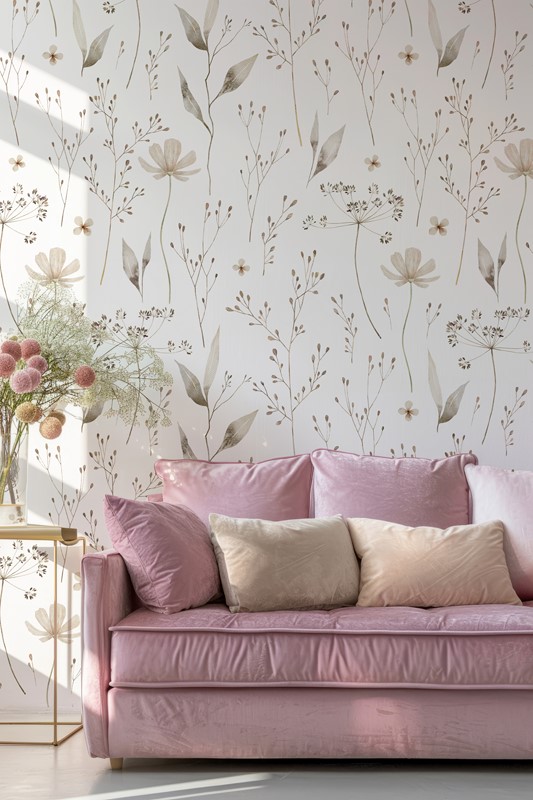 - BLOEMEN, Fotobehang, NATUUR, Boho, Groene tinten, Kleuren, Paarse tinten, Stijl, Voor de kamer, Voor de woonkamer, Voor kantoor
