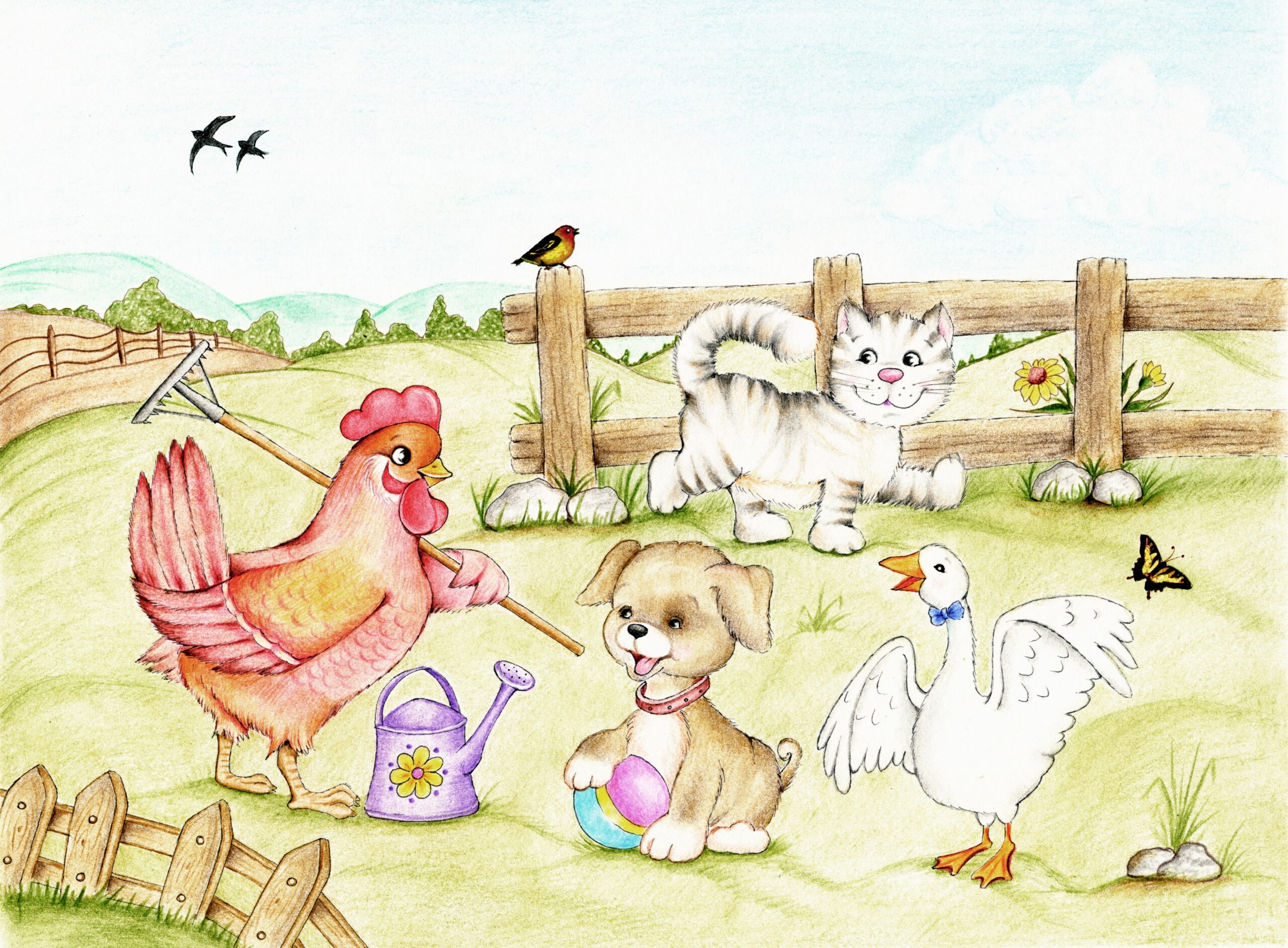 Fotobehang “Boerderij vol vreugde” – een kleurrijke wereld van plezier, vriendschap en vrolijke natuur voor kinderen