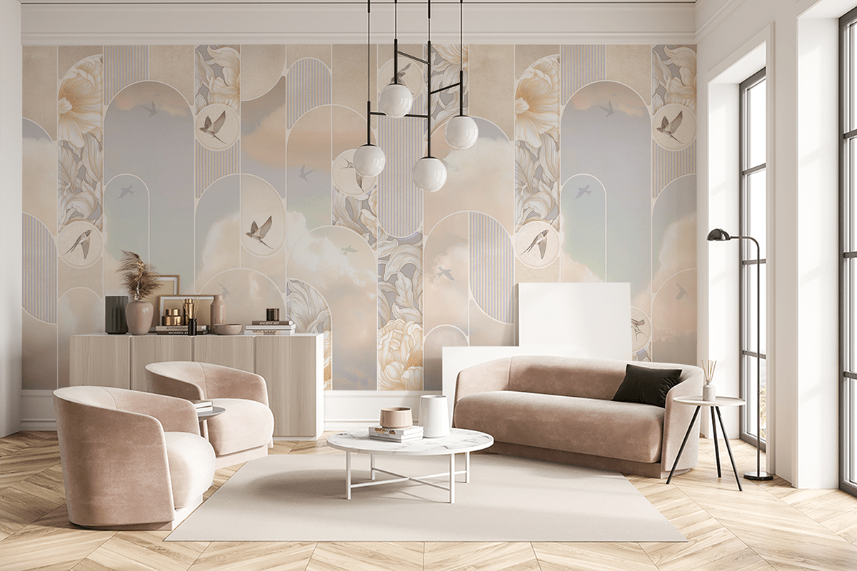 Breng rust en lichtheid in uw huis met het “Touch of Heaven” fotobehang. Dit ongelooflijk delicate patroon, geïnspireerd op wolken en pastelkleurige luchten, brengt een gevoel van vrede, ruimtelijkheid en een dromerige sfeer in het interieur. Lichte tinten, zachte kleurovergangen en een subtiele compositie creëren een effect dat de zintuigen ontspant en de geest kalmeert.
