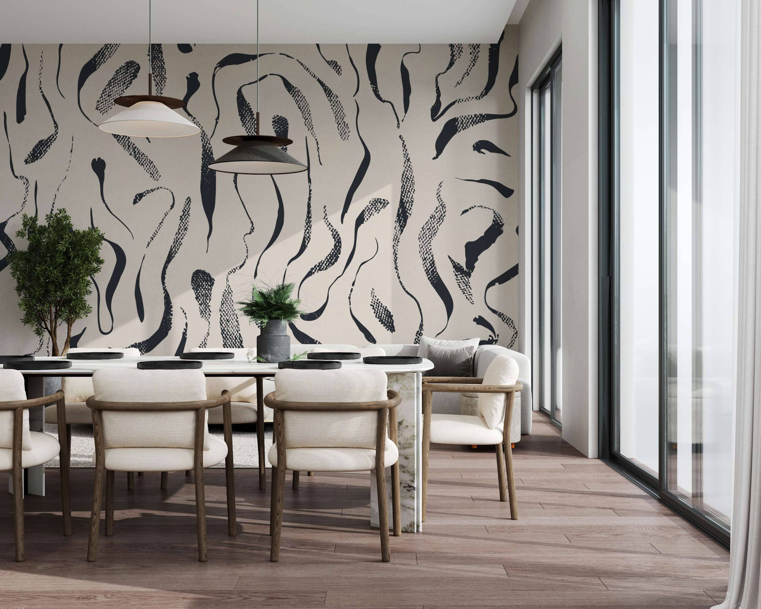 Een fotobehang geeft een uniek karakter aan een woonkamer, slaapkamer, kantoor of commerciële ruimte en creëert een stijlvolle, inspirerende sfeer. Een fotobehang is meer dan alleen decoratie – het is een perfecte manier om moderne abstractie en artistieke finesse in een interieur te introduceren, waardoor de ruimte een unieke, creatieve dimensie krijgt.