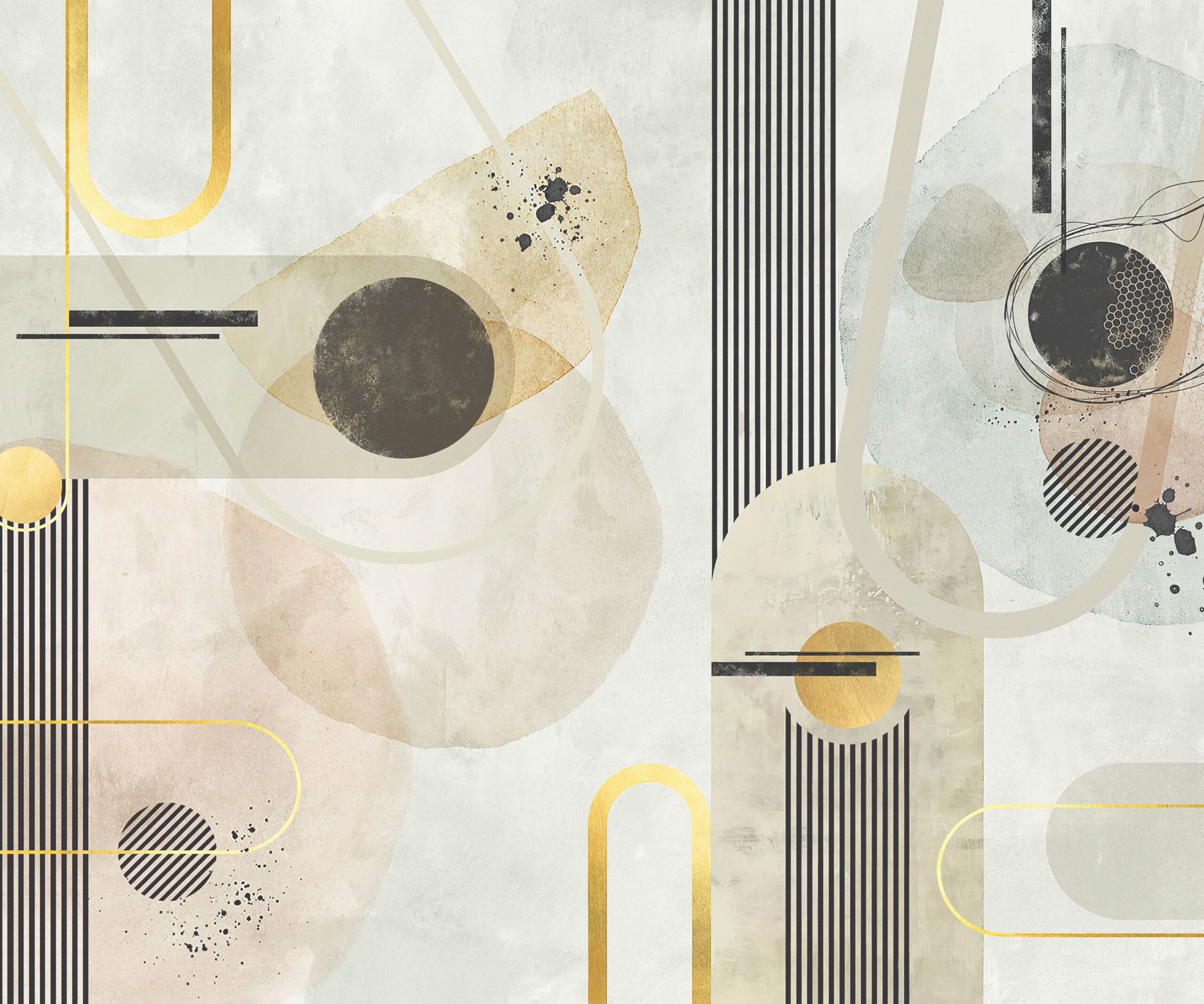 Ontdek de schoonheid van hedendaagse kunst in het comfort van uw eigen huis met het fotobehang “Geometric Whisper”. Deze unieke compositie combineert delicate geometrische vormen met een subtiel kleurenpalet, waardoor een harmonieuze en elegante ruimte ontstaat die bevorderlijk is voor concentratie en ontspanning. Warme beigetinten, gedempte blauwtinten en zachte grijstinten verweven zich met grafische lijnen, waardoor het interieur een artistiek maar onopvallend karakter krijgt.