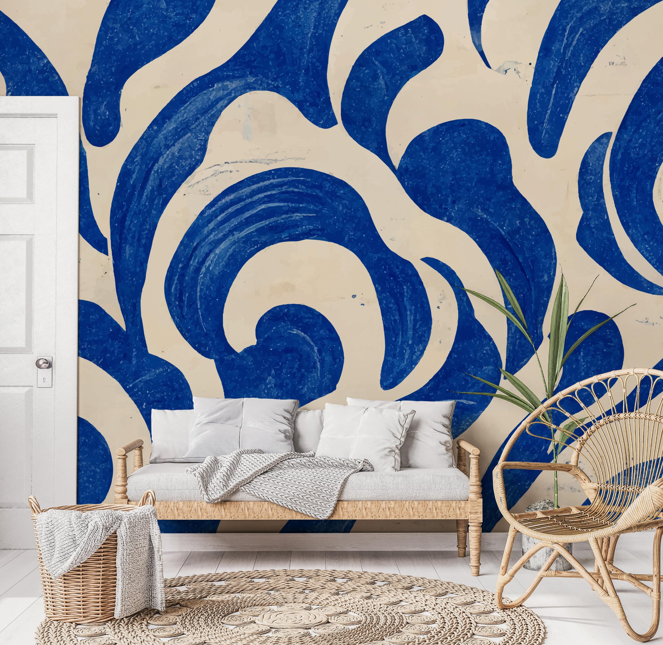 Breng moderne elegantie in uw interieur met het fotobehang “Wavy Spaces”. Dit stijlvolle blauw-witte patroon doet denken aan de vloeiende vormen en natuurlijke energie van golven, die lichtheid en harmonie in een ruimte brengen. De artistieke compositie van gebogen lijnen creëert een uniek visueel effect en voegt diepte en dynamiek toe aan interieurs.