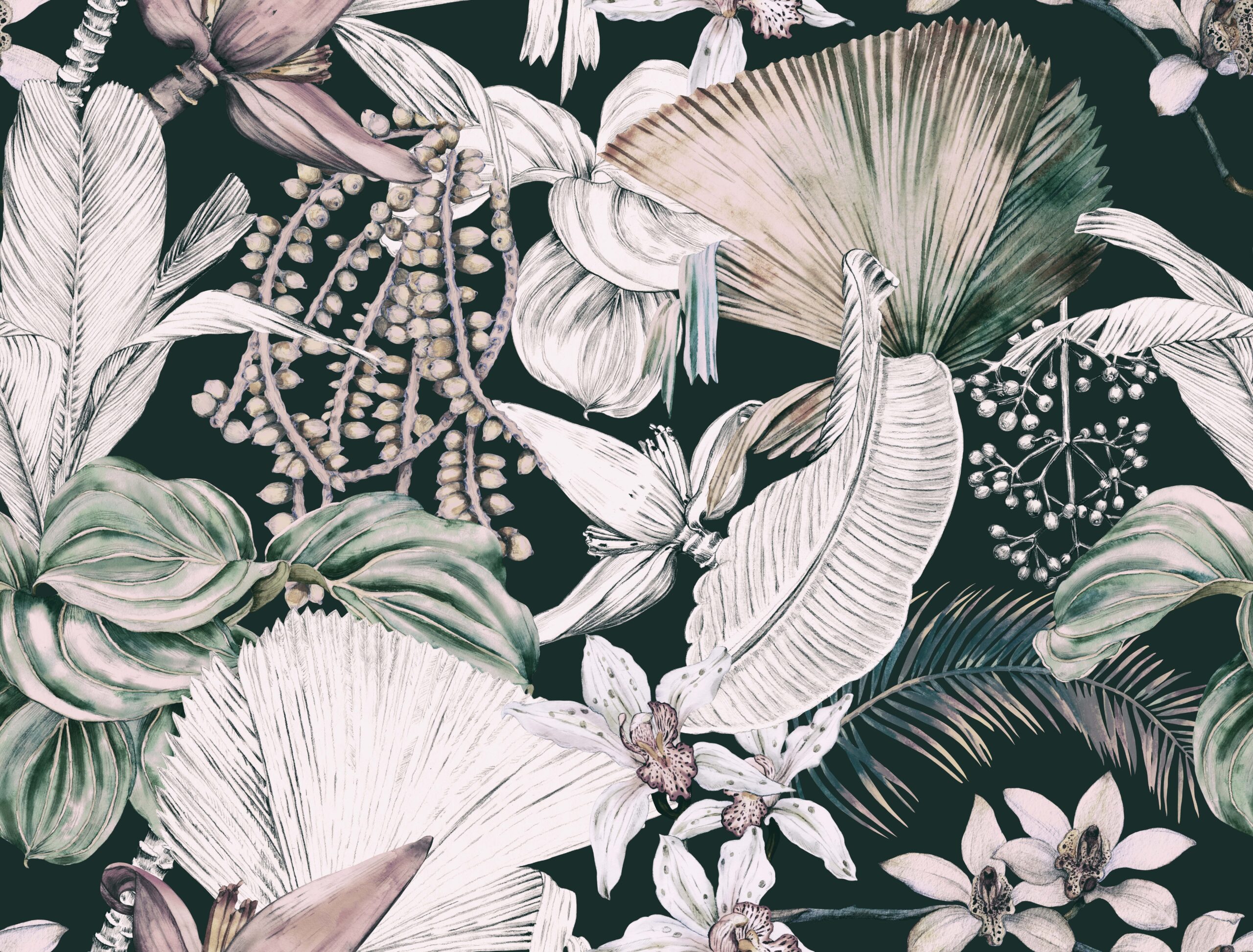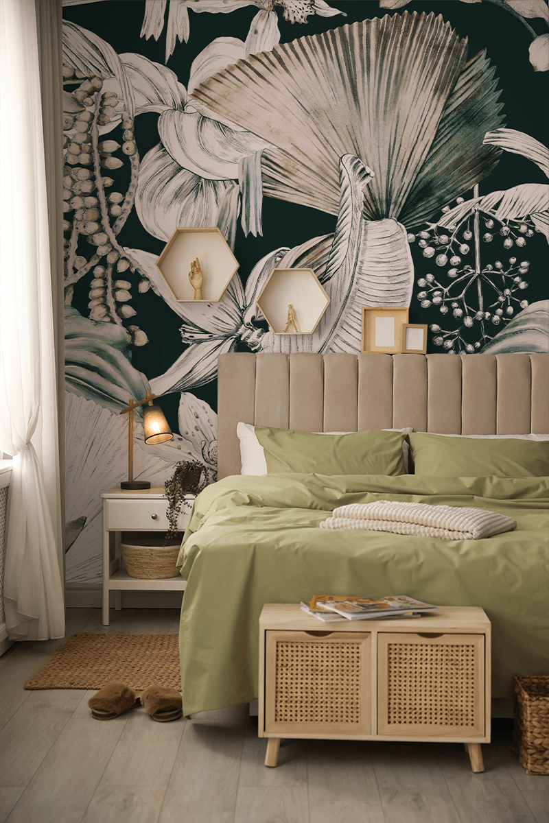 Breng een vleugje natuur in huis met het “Groene Harmonie” fotobehang. Het prachtige, botanisch geïnspireerde patroon combineert de delicate schoonheid van bladeren, bloemen en subtiele kleuren die rust en balans brengen in elke ruimte. Groen, beige en warme tinten van bloemen creëren een gevoel van verbondenheid met de natuur, terwijl ze tegelijkertijd een elegant karakter aan het interieur toevoegen.