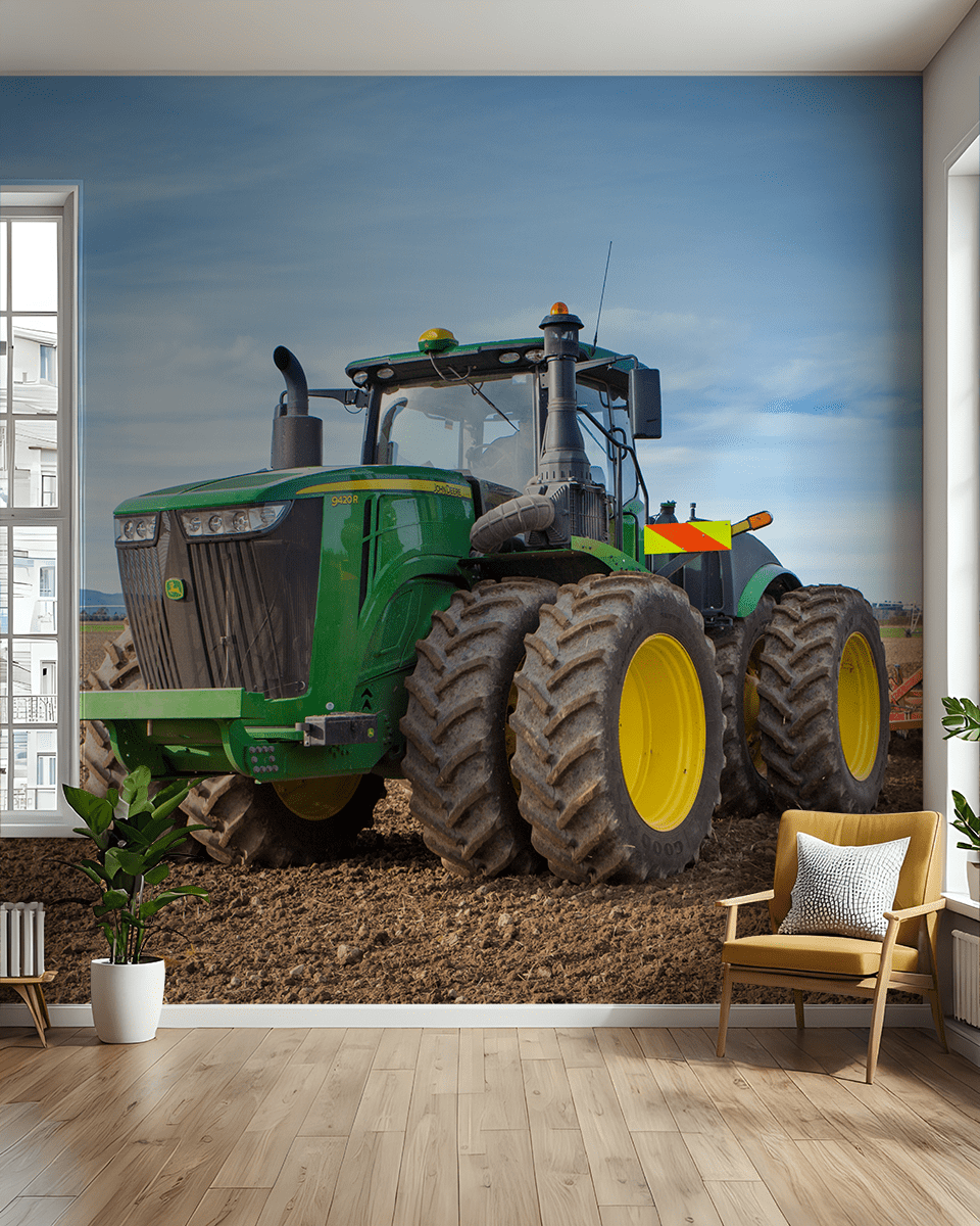 Breng een dynamische en inspirerende sfeer in uw interieur met het fotobehang “Green Hero”. Dit indrukwekkende motief toont een krachtige, groene tractor tegen een achtergrond van uitgestrekte velden, symbool voor kracht, doorzettingsvermogen en verbondenheid met de natuur. Intens groen en gedetailleerde elementen weerspiegelen de kracht van machines en de charme van het landelijke landschap, waardoor een interieur vol leven en energie ontstaat.