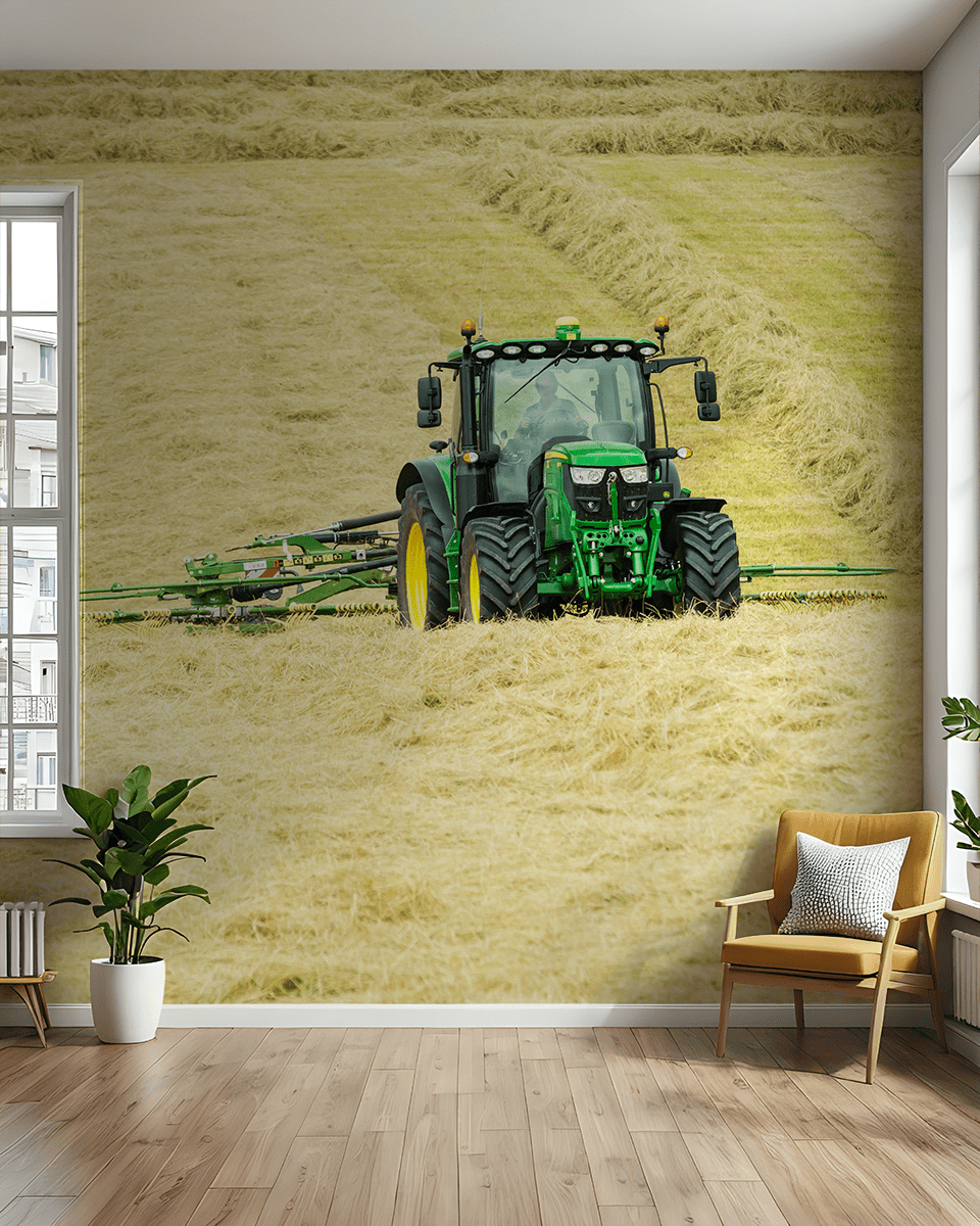 Breng de energie van de velden en het ritme van werkende machines in uw interieur met het fotobehang “Groene Titan”. Deze compositie, met een indrukwekkende tractor tegen de achtergrond van gouden hooilanden, is een eerbetoon aan de moderne landbouw en de ongetemde kracht van de natuur. Het weelderige groen van de machine contrasteert met de warme tinten van de weide, waardoor een dynamische en inspirerende ruimte ontstaat.