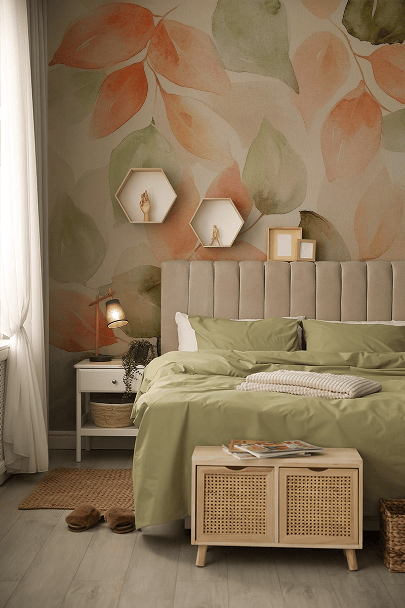 Verlevendig uw interieur met de subtiele charme van de herfst met het “Herfstsonate” fotobehang. Dit op de natuur geïnspireerde aquarelpatroon combineert pastelkleuren oranje, groen en beige en creëert een rustige, maar expressieve compositie van bladeren. Het geheel straalt warmte, zachtheid en een schilderachtige lichtheid uit en brengt een unieke sfeer van seizoensgebonden reflectie en harmonie in de ruimte.