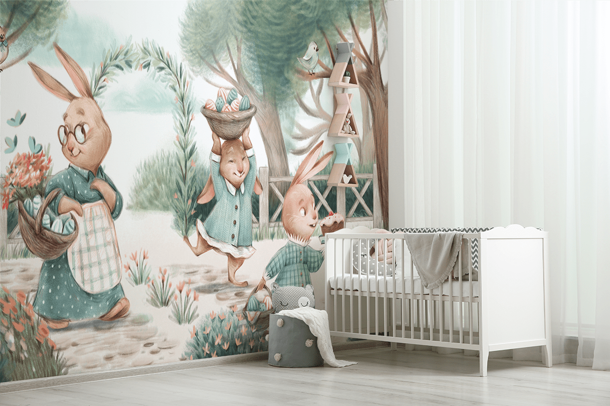 Een fotobehang fleurt je interieur op en geeft het een charmante, lenteachtige warmte. Een fotobehang is meer dan alleen decoratie – het is een manier om een ruimte te creëren die je kleintje inspireert om te spelen, te fantaseren en nieuwe avonturen te ontdekken in het gezelschap van vrolijke konijntjes.