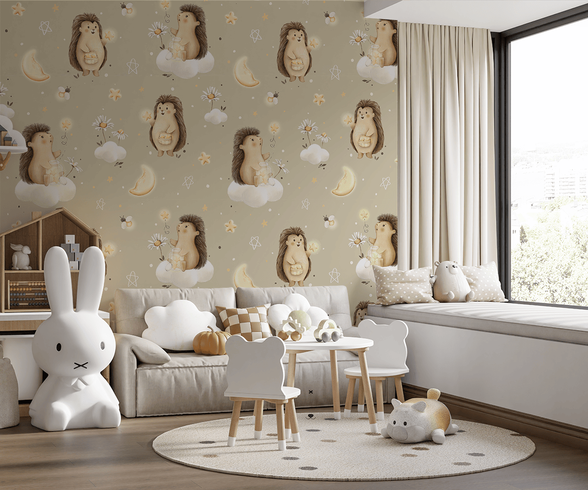“Maan-egeltjes” fotobehang – een sprookjeswereld, de warmte van een kinderlijke fantasie en een charmante decoratie voor een peuterkamer