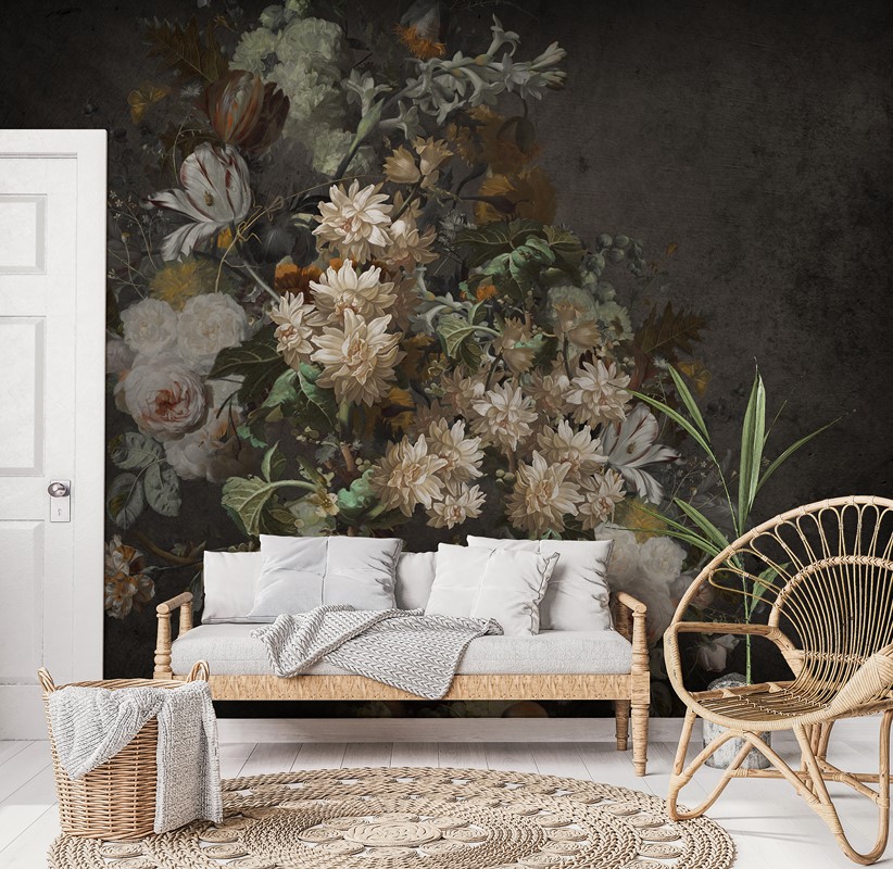 Mysterieus Boeket Fotobehang – een artistiek spel van bloemen aan je muur