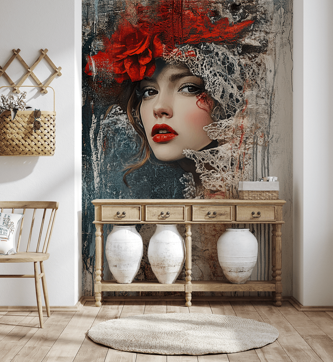 Fotobehang “Red Mystery” – expressieve elegantie, artistieke diepte en subtiele interieurdecoratie