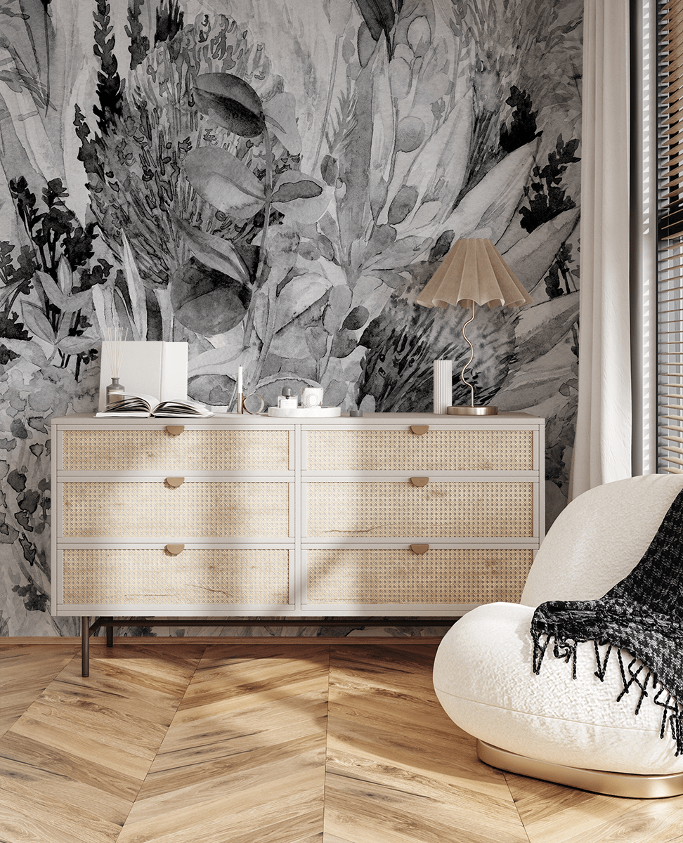Breng een unieke sfeer in huis met het fotobehang “Schaduwen van de natuur”. Dit unieke zwart-witte plantenpatroon, geïnspireerd op aquarelillustraties, roept de rust en harmonie van de natuur op en geeft de ruimte een artistiek en verfijnd karakter. Delicate kleurovergangen en natuurlijke motieven passen perfect bij diverse interieurstijlen – van modern tot klassiek.