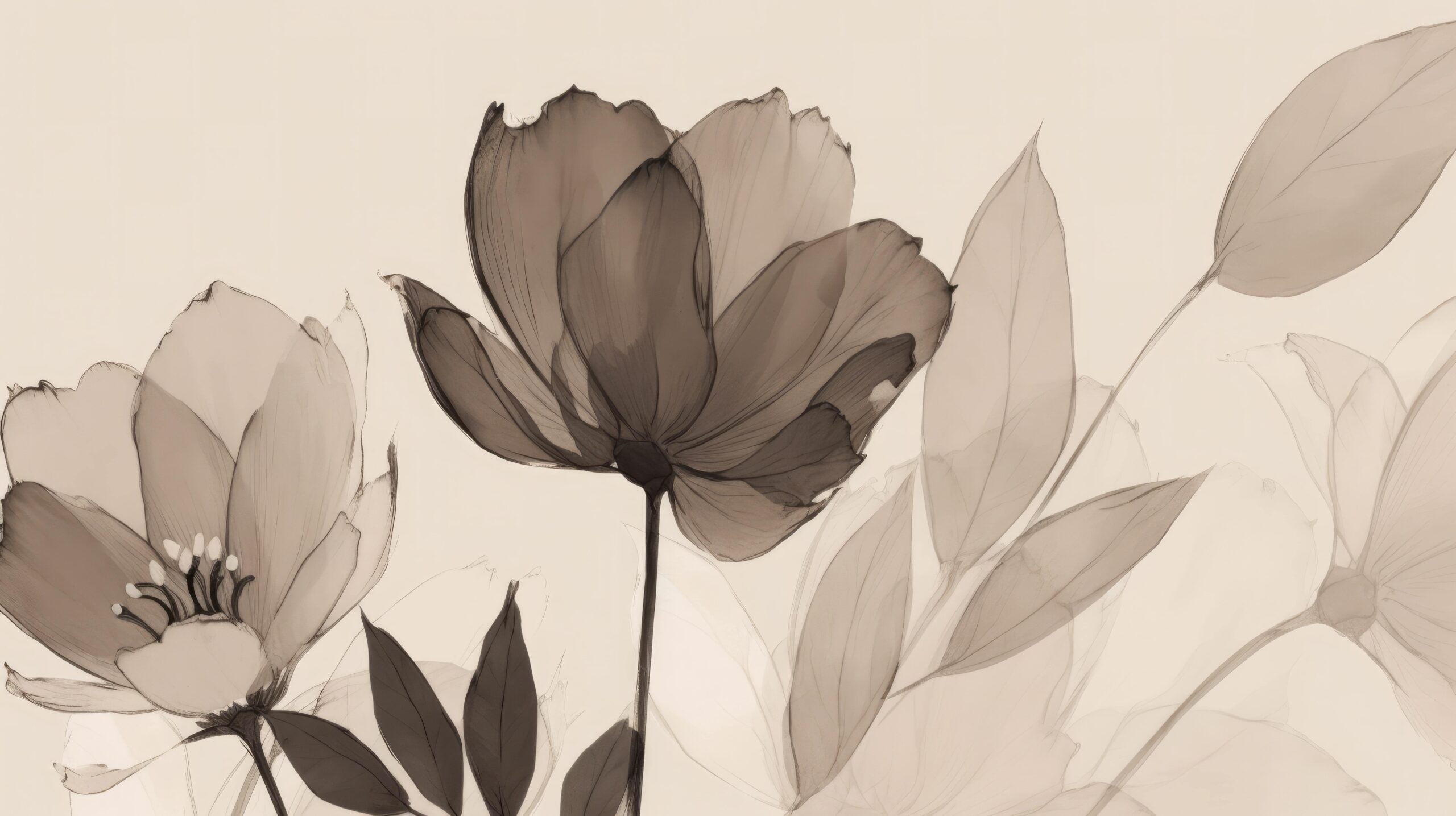 Breng het rustgevende ritme van de natuur in uw interieur met de muurschildering “Stilte van Bloemblaadjes”. Het etherische bloemenmotief, in gedempte sepiatinten, creëert een unieke compositie die verrast met zijn lichtheid en rust. Zachte lijnen en transparante lagen doen denken aan een aquareltekening, waardoor de ruimte een verfijnd, bijna poëtisch karakter krijgt.