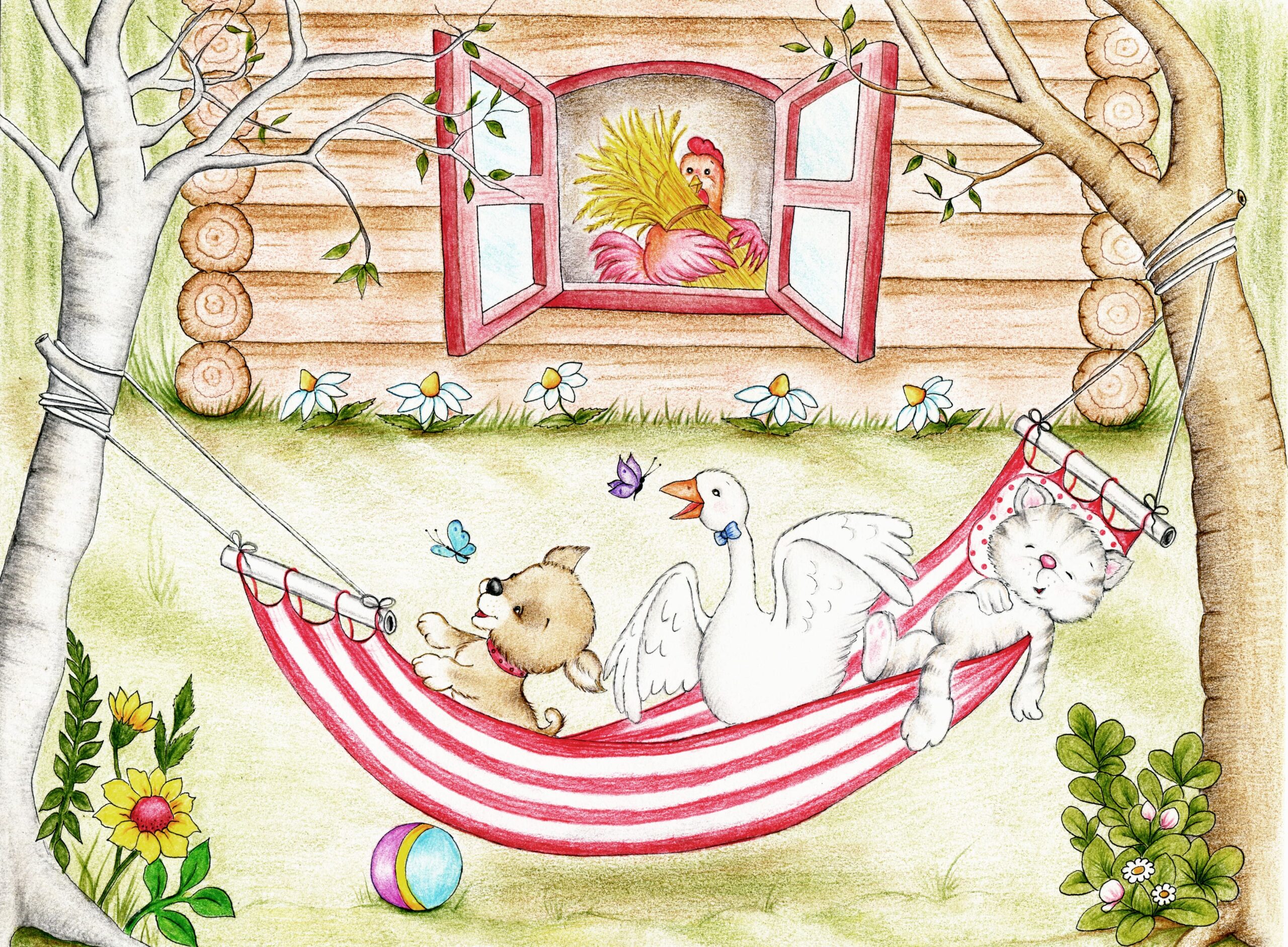 Fotobehang “Schommelpakket” – een vrolijke wereld vol plezier, vriendschap en kleuren voor de kleintjes