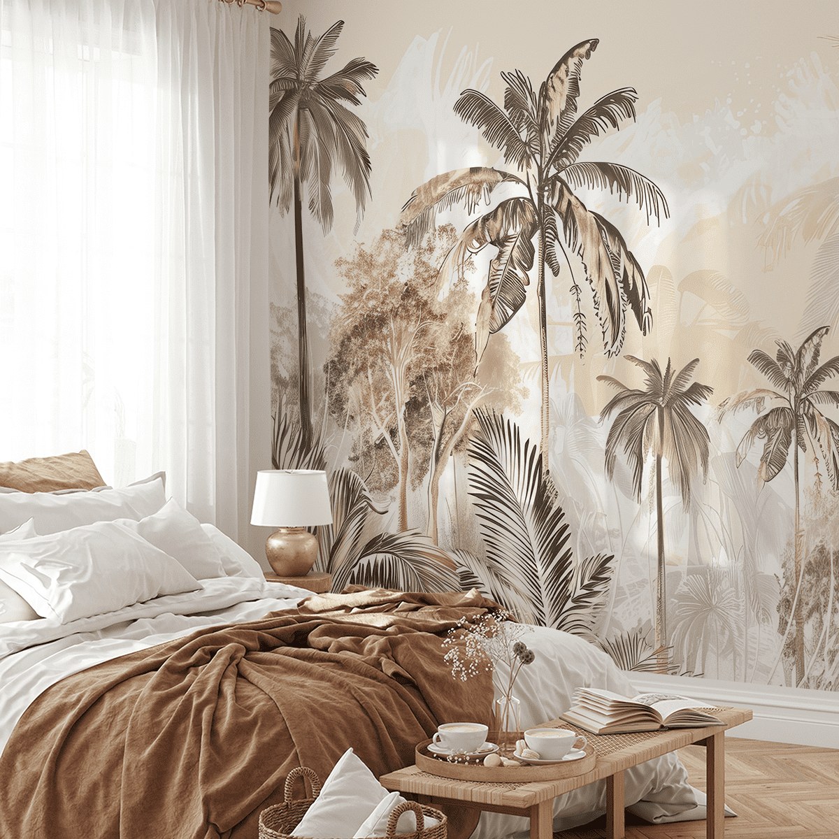 “Tropical Melody” fotobehang – Exotische charme, warm kleurenpalet en subtiele natuurlijke elegantie