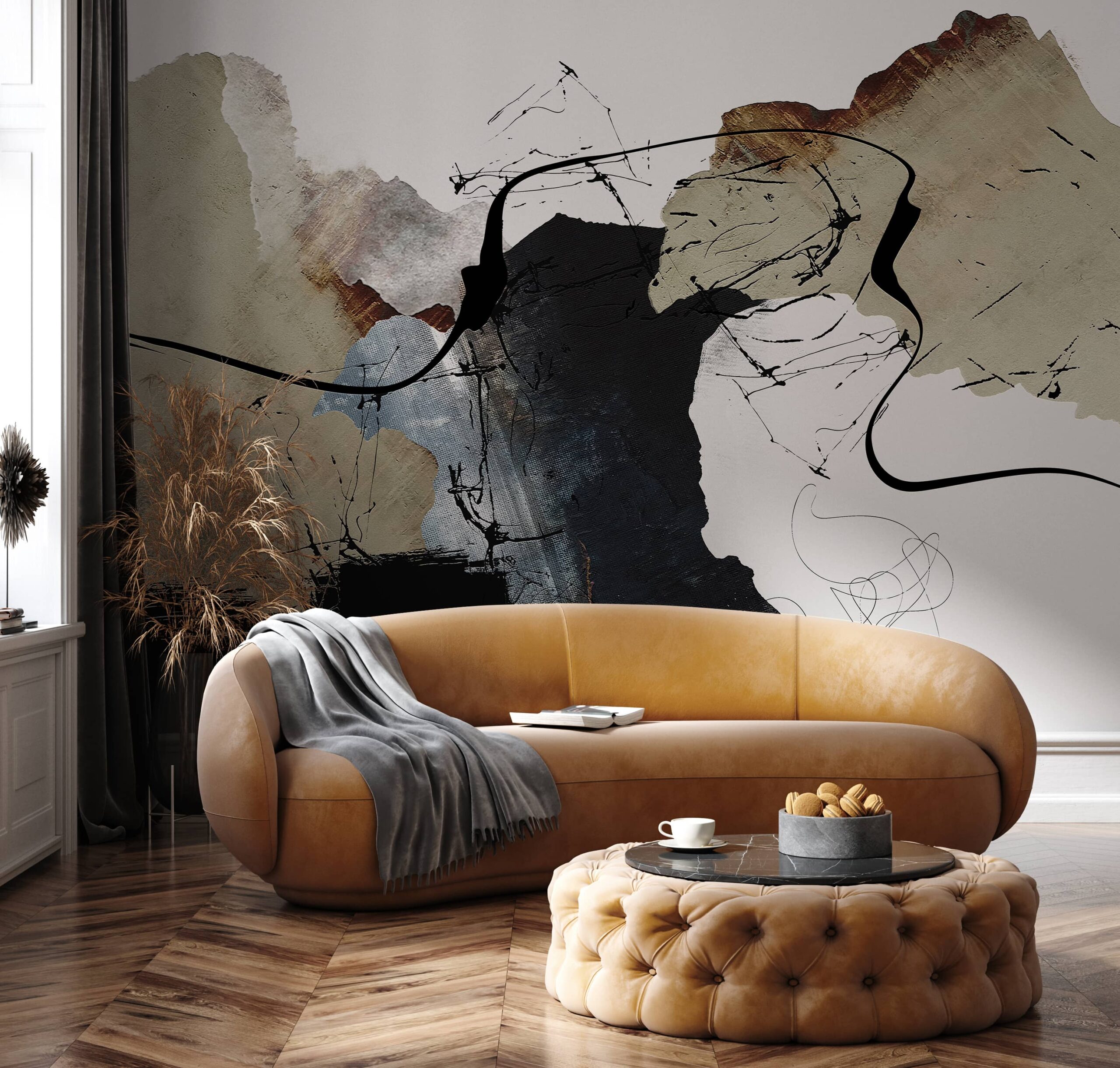 Geef je huis een uniek karakter met het fotobehang “Shapes of Disorder”. Dit unieke, geometrische patroon combineert onregelmatige vormen, lijnen en stippen tot een harmonieuze, maar energieke compositie die elke ruimte zal verlevendigen en diversifiëren. De combinatie van ingetogen, natuurlijke kleuren met expressieve zwarte accenten geeft het interieur moderne energie, artistieke vrijheid en een gevoel van diepte en beweging. Subtiele kleurovergangen en een doordachte rangschikking van elementen maken het patroon opvallend zonder de hele inrichting te overheersen, waardoor er balans en rust in de kamer ontstaat.
