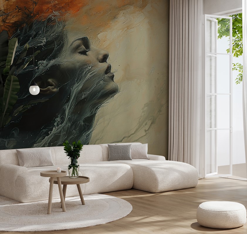 Behang “Vrouwenportret in abstractie” – sensuele expressie, artistieke diepte en een moderne vorm van interieurdecoratie