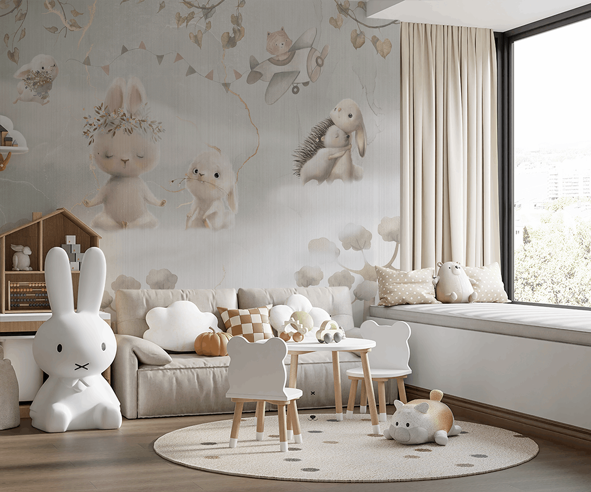 Pasteltinten en een sprookjesachtig motief passen perfect bij het ontwerp van kinderkamers, stimuleren de verbeelding en creëren een gezellige plek om te spelen en te ontspannen. Het is een uitstekende keuze voor ouders die hun kinderen een veilige en knusse ruimte willen bieden, waar elk detail de vreugde, zachtheid en kinderlijke fantasie benadrukt. Fotobehang is meer dan alleen decoratie – het is een magisch detail dat een kamer transformeert in een plek vol warmte en dromen.