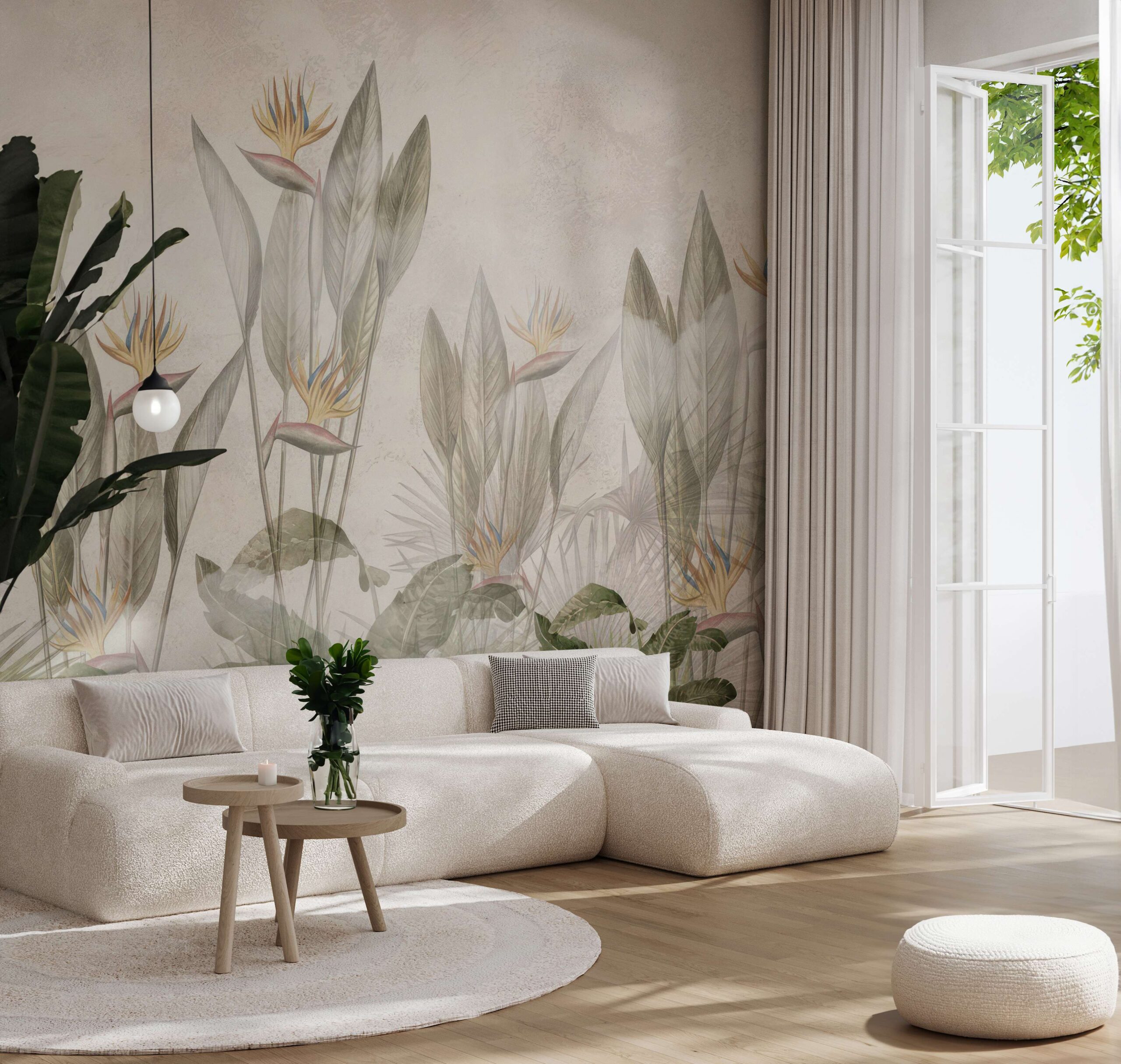 “Delicate Tropical Mist” fotobehang – Subtiele lichtheid, exotische frisheid en harmonieuze interieurdecoratie
