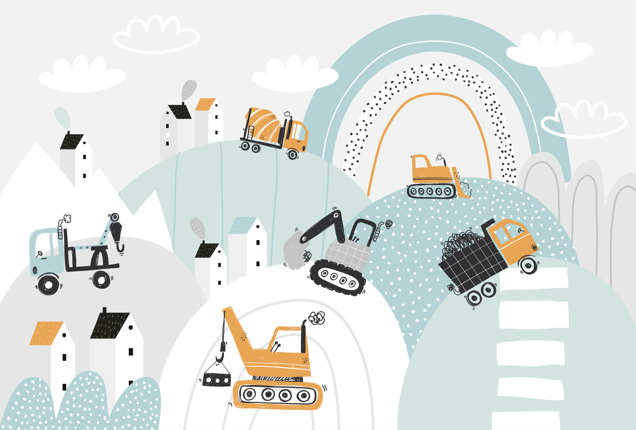 Muurschildering Bouwvoertuigen – Een wereld vol bouwwerken in de kamer van je kind