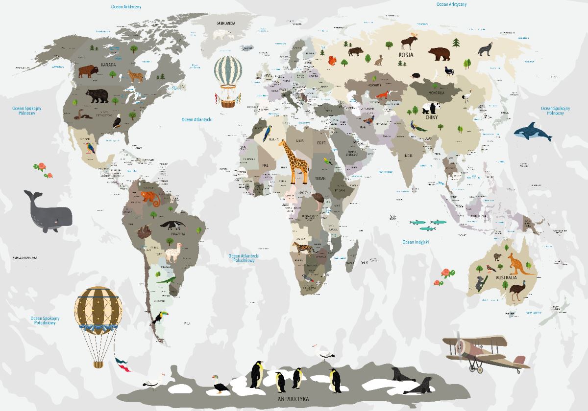 Ben je op zoek naar een originele decoratie voor je flat of kantoor? Deze muurschildering met een wereldkaart in het Pools is de perfecte oplossing! De kaart is geproduceerd in hoge kwaliteit, zodat elk detail perfect zichtbaar is.
